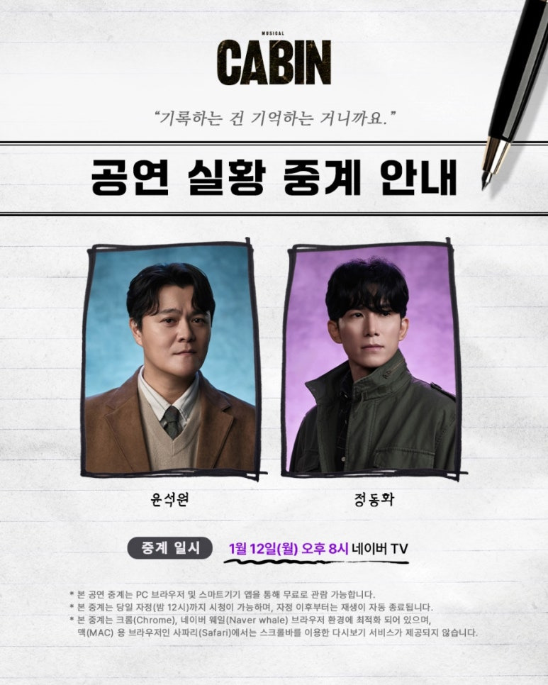 #뮤지컬캐빈 #캐빈실황중계#뮤지컬무료중계 #네이버TV공연 #창작뮤지컬 #윤석원 #정동화 #이티씨어터 #뮤지컬정보 #공연추천