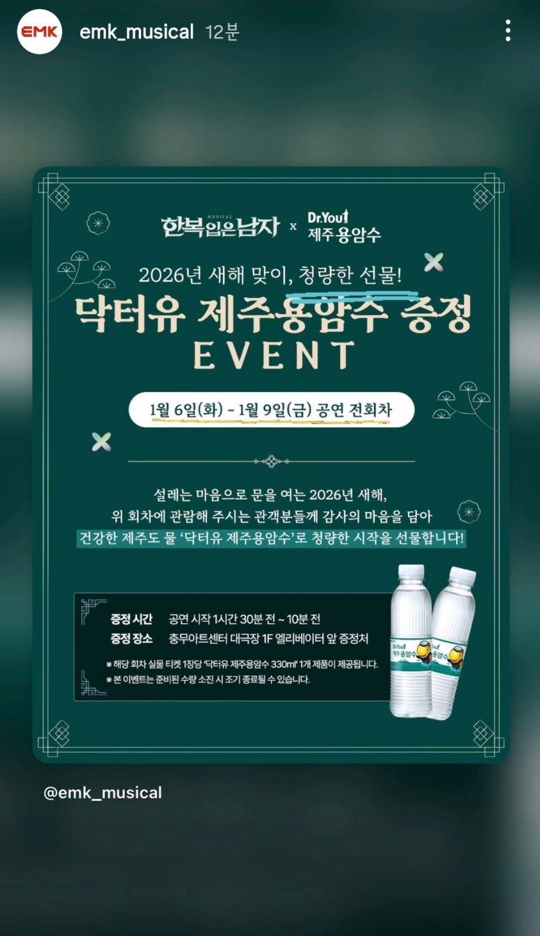 이날은 한복입은 남자와 닥터유 제주용암수 콜라보해서 생수 한병씩 무료로 나누어주었습니다.