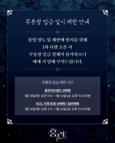 • 1월 13일 오전 11시 : 충무아트센터 선예매