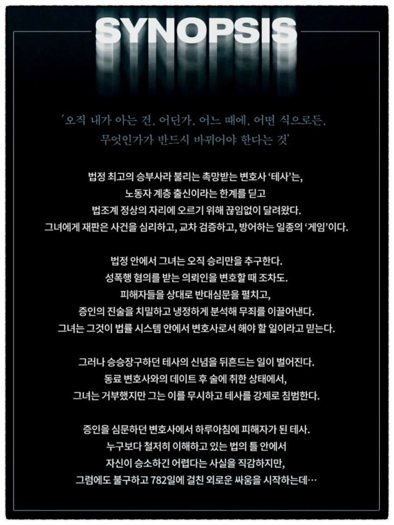 주인공 테사는 승소만을 좇는 야심 가득한 변호사입니다.