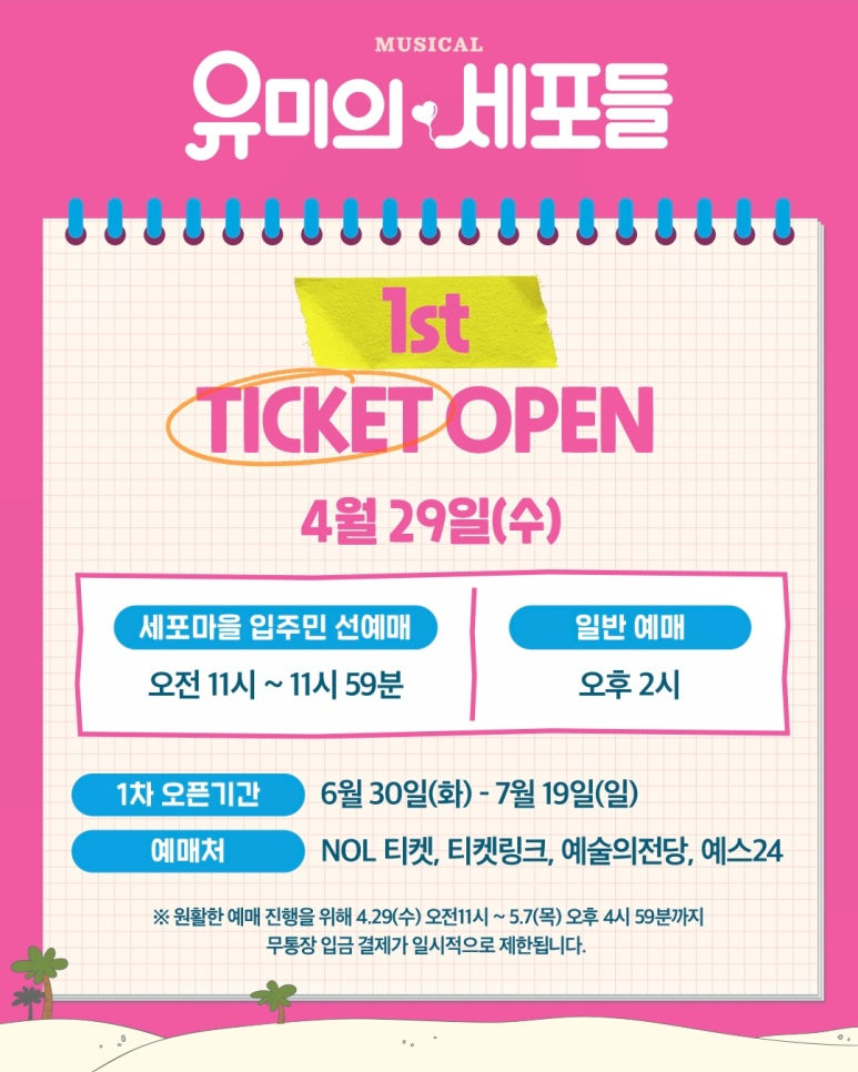 1차 티켓 오픈은 4월 29일 수요일이에요.